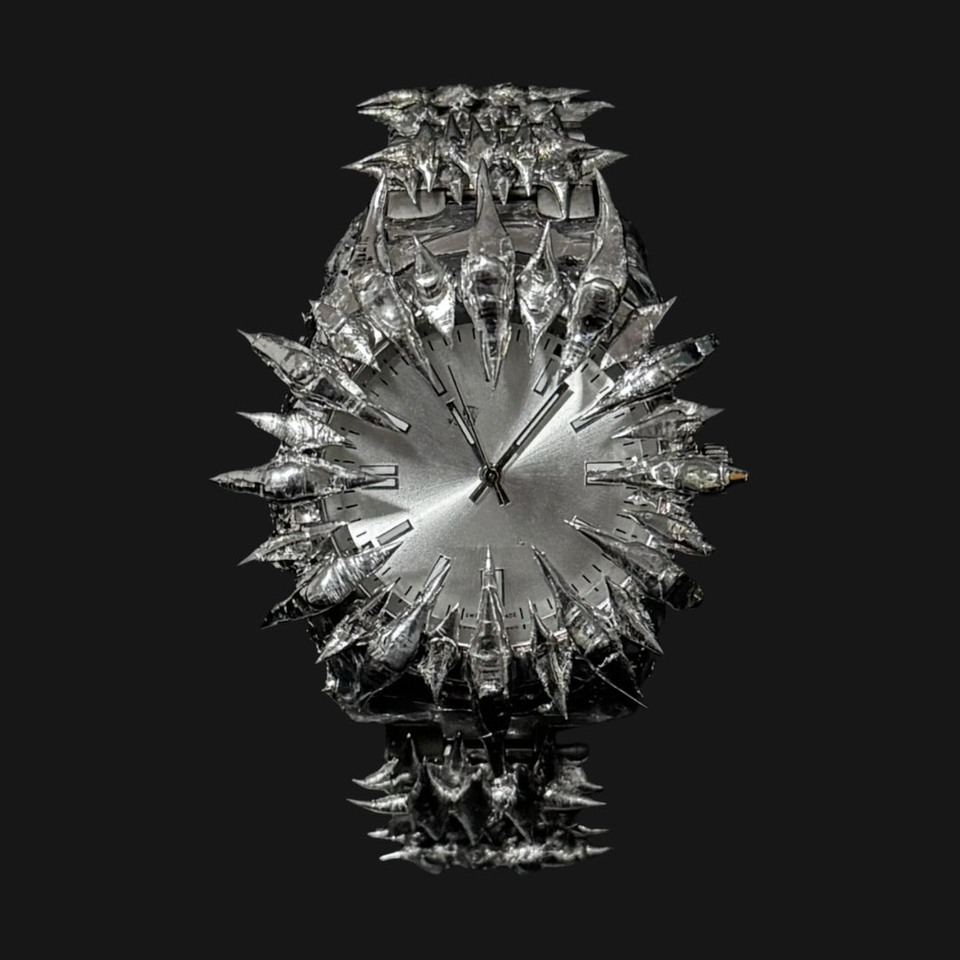 Every Naxiel Frostbite is handcrafted with sculptural precision, shaped through advanced soldering techniques to create its frozen crown silhouette. This isn't a watch. It's a statement — cold, clean, and impossible to ignore.